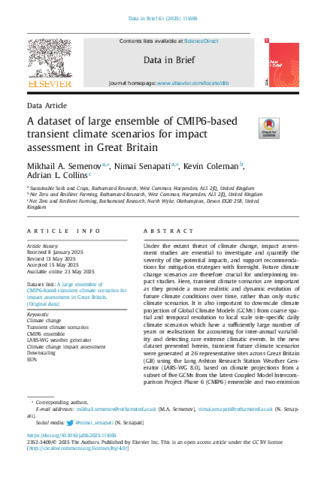 | Keywords | Climate change, Transient climate scenarios, CMIP6 ensemble, LARS-WG weather generator, Climate change impact assessment, Downscaling, SSPs |