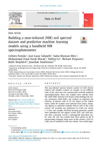 Building a Near-infrared (NIR) Soil Spectral Dataset and Predictive Machine Learning Models using a Handheld NIR Spectrophotometer