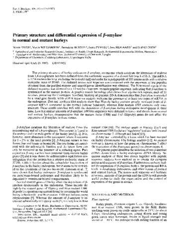 Primary structure and differential expression of beta-amylase in normal and mutant barleys.