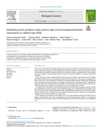 Identifying insect predators using camera traps reveal unexpected predator communities in oilseed rape fields