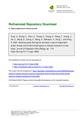 | Keywords | CDPK, Gene transcription, Late blight, NLR, Plant resistance, Potato |