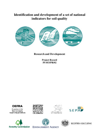 Identification and development of a set of national indicators for soil quality - Research and Development Project Record P5-053/PR/02