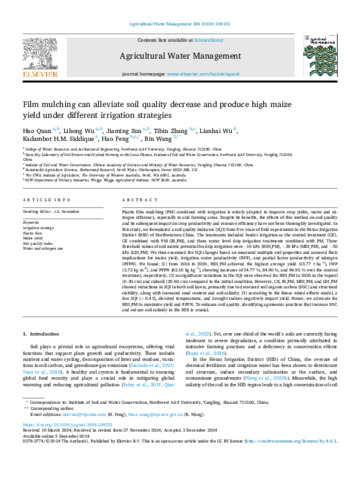 | Keywords | Irrigation strategy, Plastic film, Maize yield, Soil quality index, Water and nitrogen use |