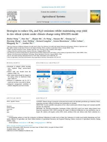 Strategies to reduce CH4 and N2O emissions whilst maintaining crop yield in rice–wheat system under climate change using SPACSYS model