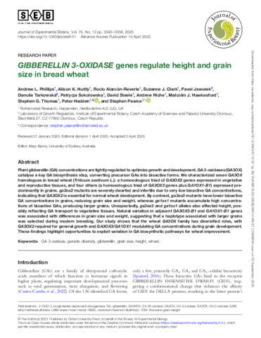 GIBBERELLIN 3-OXIDASE genes regulate height and grain size in bread wheat