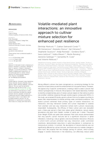 | Keywords | Plant-plant communication, Aphid infestation, Sustainable pest management within species plant diversity, Winter wheat, Spring barley, Aphid population development, Grain yield |