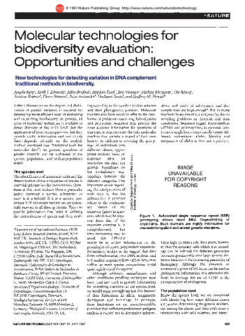 Molecular technologies for biodiversity evaluation: Opportunities and challenges.
