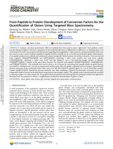 | Keywords | Wheat, Gluten, Celiac disease, IgE reactivity, Targeted mass spectrometry, Conversion factor |