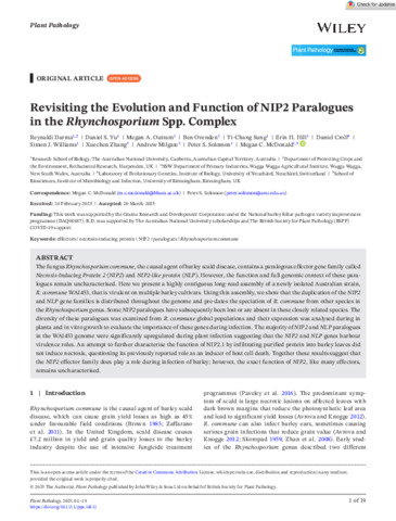 | Additional information | Additional supplementary files in Zenodo (DOI: 10.5281/zenodo.14871345) Funding: This work was supported by the Grains Research and Development Corporation under the National barley foliar pathogen variety improvementprogramme (DAQ00187). R.D. was supported by The Australian National University scholarships and The British Society for Plant Pathology (BSPP)COVID-19 support |