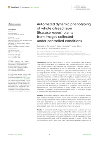 Automated dynamic phenotyping of whole oilseed rape (Brassica napus) plants from images collected under controlled conditions