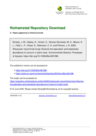 Arbuscular mycorrhizal fungi influence the speciation and subcellular abundance of uranium in plant roots