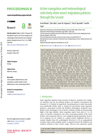 | Keywords | Meteorological effects, Flight behaviour, Insect migration, Radar monitoring, Israel, Levantine Corridor, Eastern Mediterranean |