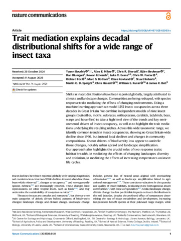 Trait mediation explains decadal distributional shifts for a wide range of insect taxa