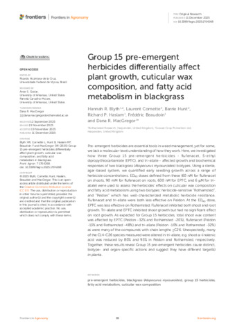 | Keywords | Pre-emergent herbicides, Weed management, Group 15 herbicides, Mode of action, Biochemical responses, Physiological effects |