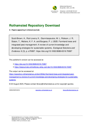 Farmland trees and integrated pest management: A review of current knowledge and developing strategies for sustainable systems