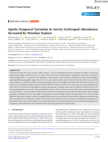| Keywords | Arthropod declines, Weather radars, Spatio-temporal ecology, United Kingdom, Radar entomology |