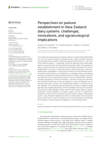 Perspectives on pasture establishment in New Zealand dairy systems: challenges, innovations, and agroecological implications