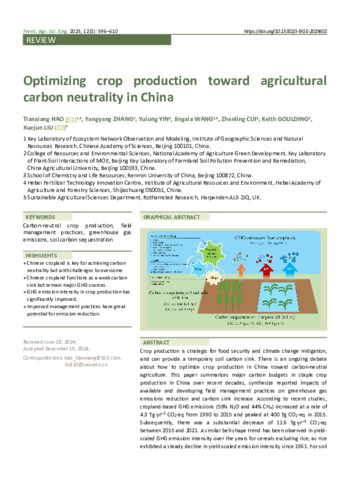 | Keywords | Carbon-neutral crop production, Field management practices, Greenhouse gas emissions, Soil carbon sequestration |