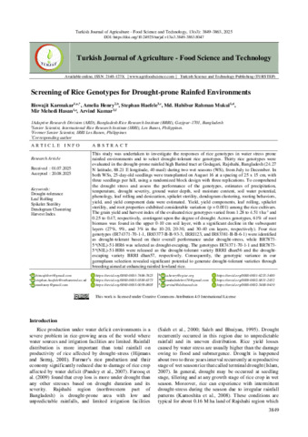 | Keywords | Drought-tolerance, Leaf Rolling, Spikelet Sterility, Dendogram Clustering, Harvest Index |