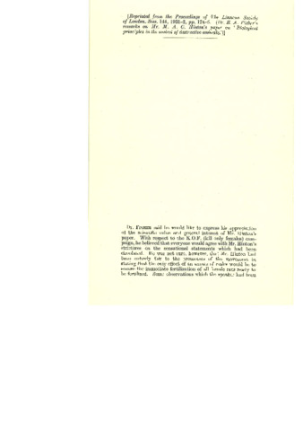 Dr R A Fisher's remarks on Mr M. A. C. Hinton's paper on Biological principles in the control of destructive animals