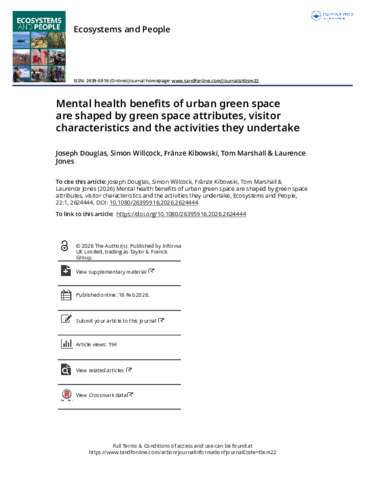 Mental health benefits of urban green space are shaped by green spaceattributes, visitor characteristics and the activities they undertake