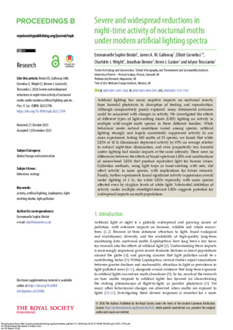 Severe and widespread reductions in night-time activity of nocturnal moths under modern artificial lighting spectra