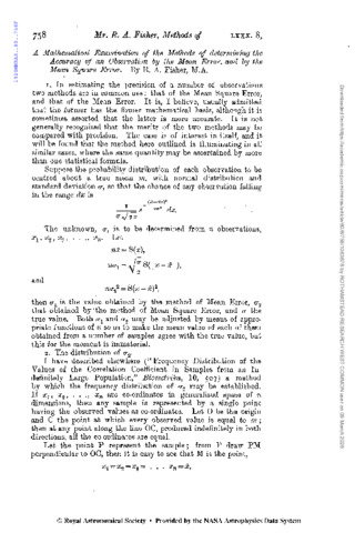 A mathematical Examination of the Methods of determining the Accuracy of Observation by the Mean Error, and by the Mean Square Error.