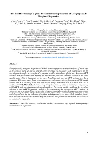 The GWR route map: a guide to the informed application of Geographically Weighted Regression