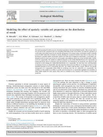 Modelling the effect of spatially variable soil properties on the distribution of weeds