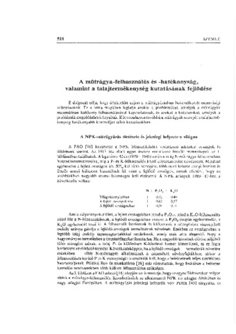 A mutragya-felhasznalas es -hatekonysag, valamint a talajtermekenyseg kutatasanak fejlodese.