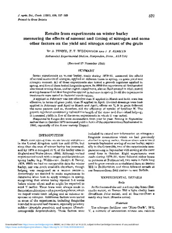 Penny, A., Widdowson, F. V. and Jenkyn, John