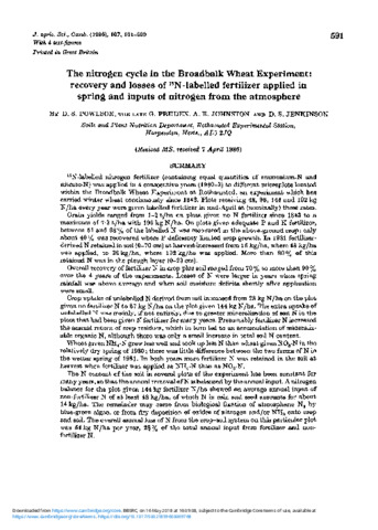 The nitrogen cycle in the Broadbalk Wheat Experiment : recovery and losses of 15N-labelled fertilizer applied in spring and inputs of nitrogen from the atmosphere
