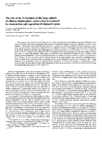 The role of the N-terminus of the large subunit of ribulose-bisphosphate carboxylase investigated by construction and expression of chimaeric genes.