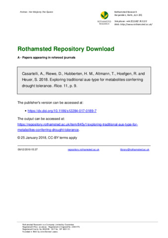 Exploring traditional aus-type for metabolites conferring drought tolerance.
