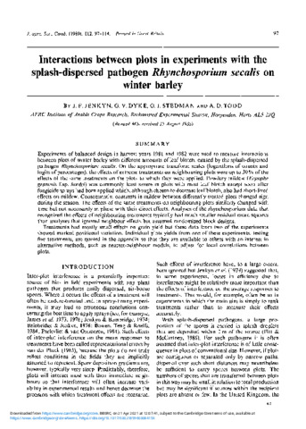 Interactions between plots in experiments with the splash-dispersed pathogen (Rhynchosporium secalis ) on winter barley.
