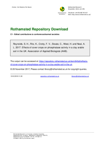 | Additional information | This work was supported by the Natural Environment Research Council; and the Biotechnology and Biological Sciences Research Council [Grant number NE/M009106/1] by a Soils Training and Research Studentships (STARS) grant to Sam Reynolds. STARS is a consortium consisting of Bangor University, British Geological Survey, Centre for Ecology and Hydrology, Cranfield University, James Hutton Institute, Lancaster University, Rothamsted Research and the University of Nottingham.The cover crop trial at The Allerton Project was supported by the Game & Wildlife Conservation Trust (GWCT) as part of the Sustainable Intensification Research Platform (SIP). Rothamsted Research receives strategic funding from the UK |