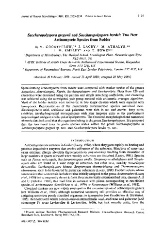 Saccharopolyspora gregorii and Saccharopolyspora hordei : two new actinomycete species from fodder.