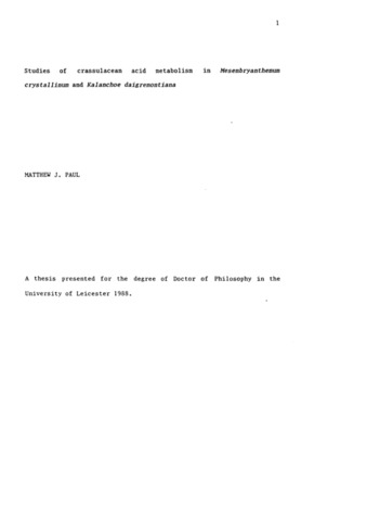 Studies of crassulacean acid metabolism in Mesembryanthemum crystallinum and Kalanchoe daigremontiana. PhD thesis, University of Leicester