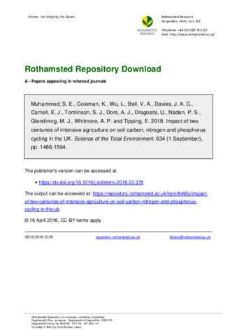 | Project | Impact of historical to current (1800-2010) intensive agriculture (arable and grassland) on carbon, nitrogen and phosphorus cycling in the UK, The Rothamsted Long Term Experiments [2017-2022] |