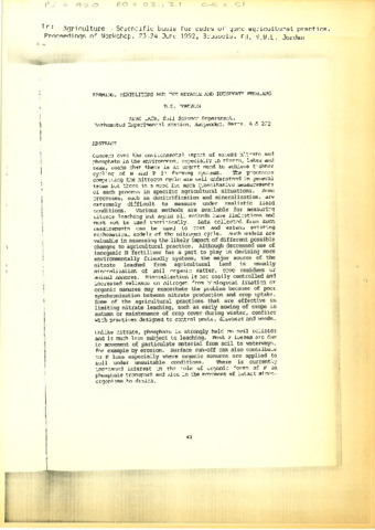Farming, fertilizers and the nitrate and phosphate problems