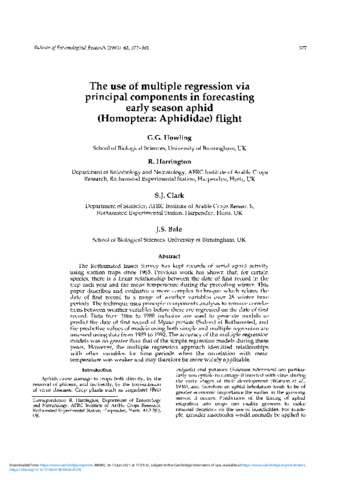 The use of multiple regression via principal components in forecasting early season aphid (Homoptera: Aphididae) flight