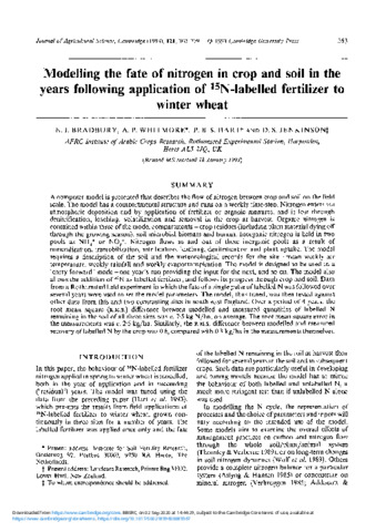 Modelling the fate of nitrogen in crop and soil in the years following application of 15N-labelled fertilizer to winter wheat.