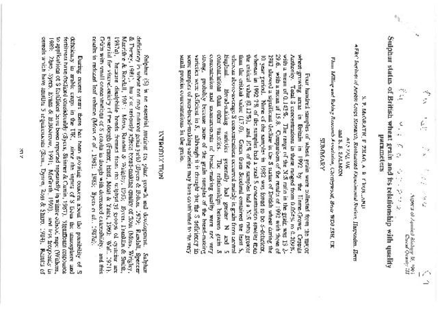 Sulphur status of British wheat grain and its relationship with quality parameters.