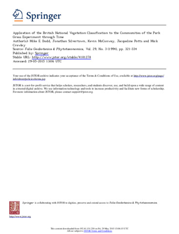 Application of the British National Vegetation Classification to the communities of the Park Grass Experiment through time.