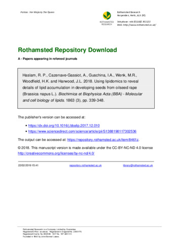 | Keywords | Developing oilseed rape; Brassica napus (L); lipidomics; lipid accumulation; regulation of synthesis |
