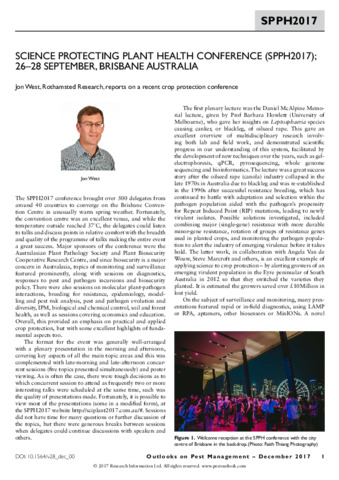 Science protecting plant health conference (SPPH2017); 26-28 September, Brisbane, Australia.