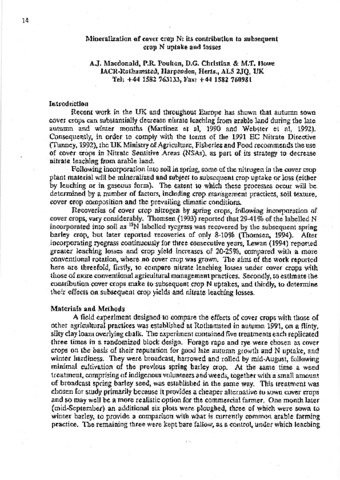 Mineralization of cover crop N: its contribution to subsequent crop N uptake and losses.