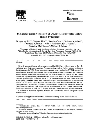 Molecular characterisation of UK isolates of barley yellow mosaic bymovirus