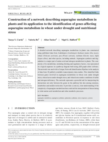Construction of a network describing asparagine metabolism in plants and its application to the identification of genes affecting asparagine metabolism in wheat under drought and nutritional stress