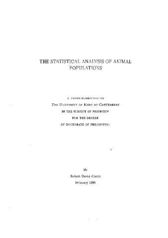 The statistical analysis of animal populations. PhD thesis, University of Kent